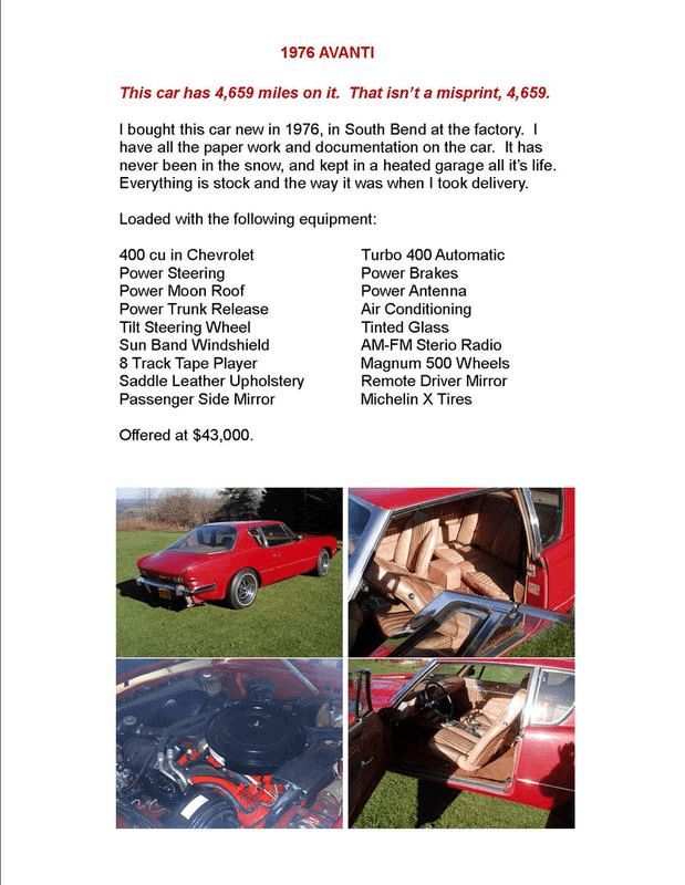 Model Year of Avantis: 2007 Convertible, 2006  Convertible, 1990 4 door Red, 1990 4 door Black, 1990 Avanti 4 door White